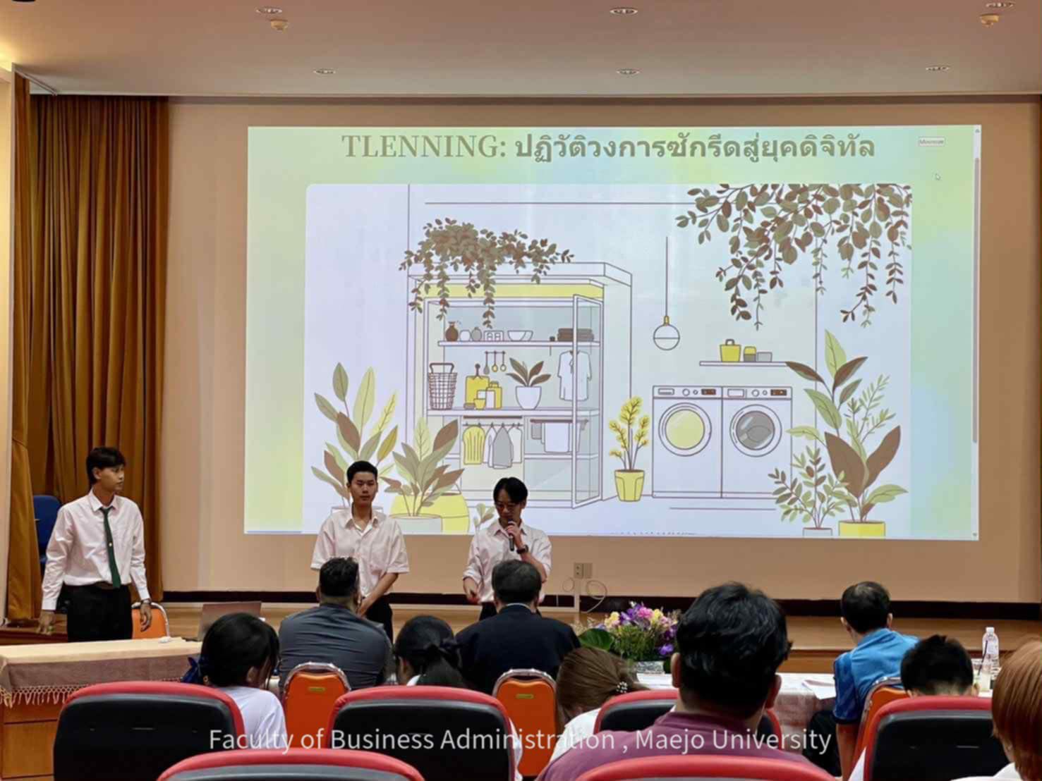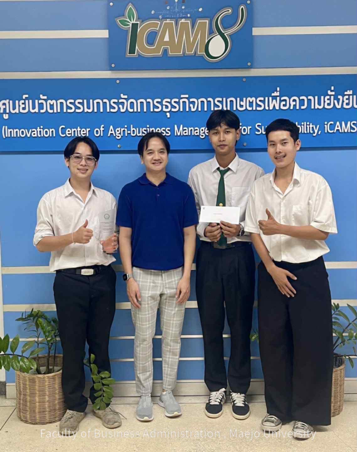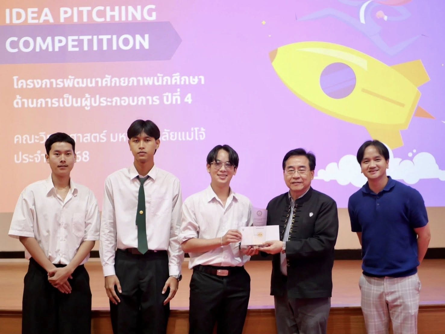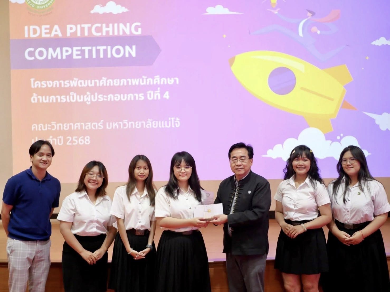 วันศุกร์ที่ 15 สิงหาคม 2568 นักศึกษาหลักสูตรบริหารธุรกิจบัณฑิต สาขาวิชานวัตกรรมธุรกิจดิจิทัล คว้ารางวัลรองชนะเลิศอันดับ 1 และรองชนะเลิศอันดับ 2 ในการแข่งขัน IDEA PITCH Competition ภายใต้โครงการพัฒนาศักยภาพนักศึกษาด้านการเป็นผู้ประกอบการ ประจำปีการศึกษา 2568 จัดโดยคณะวิทยาศาสตร์ มหาวิทยาลัยแม่โจ้ รางวัลรองชนะเลิศอันดับ 1 ได้แก่ ทีม Tlenning ประกอบด้วย นายรัชกฤช สิทธิอมรธนา, นายชนะกานต์ พิริยะเมธี และนายกฤตภูดิทคุณ เขียวจันทร์แสง นักศึกษาชั้นปีที่ 4 พร้อมรับโล่และเงินรางวัล 2,000 บาท รางวัลรองชนะเลิศอันดับ 2 ได้แก่ ทีม Your eyes My future ประกอบด้วย นางสาวสาลิกา หรรษวัต, นางสาวศตพร ฉายาสกุลวงศ์, นางสาวนวรัตน์ สิงหโรจนาบดิทร์, นางสาวสุธาสินี สุขสำราญจิตต์ และนางสาวสุชานันท์ วงค์พาน นักศึกษาชั้นปีที่ 3 พร้อมรับโล่และเงินรางวัล 1,000 บาท โดยมีผู้ช่วยศาสตราจารย์ ดร.ฉัตร ชูชื่น เป็นอาจารย์ที่ปรึกษาของทั้งสองทีม