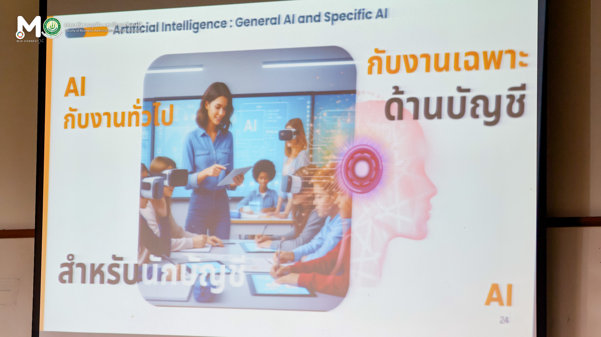วันพุธที่ 3 กันยายน 2568 หลักสูตรบัญชีบัณฑิต จัดกิจกรรมเชิญผู้ทรงคุณวุฒิมาบรรยายในชั้นเรียน หลักสูตรบัญชีบัณฑิต (1/2568) หัวข้อเรื่อง การประยุกต์ใช้เทคโนโลยีสมัยใหม่สำหรับผู้ประกอบการวิชาชีพบัญชี โดยมีวัตถุประสงค์เพื่อให้นักศึกษาได้รับความรู้เพิ่มเติมจากผู้ที่มีความเชี่ยวชาญในเนื้อหาตามรายวิชานั้นๆ และได้รับมุมมองความคิดที่หลากหลาย ณ ห้องเรียน ศร 304 อาคารเรียนรวมแม่โจ้ 70 ปี ทั้งนี้ได้รับเกียรติจาก รองศาสตราจารย์ ดร.อุเทน เลานำทา กรรมการผู้จัดการ บริษัท อินเทลลิเจนท์ ดี.ซี. จำกัด เป็นวิทยากรในการบรรยาย