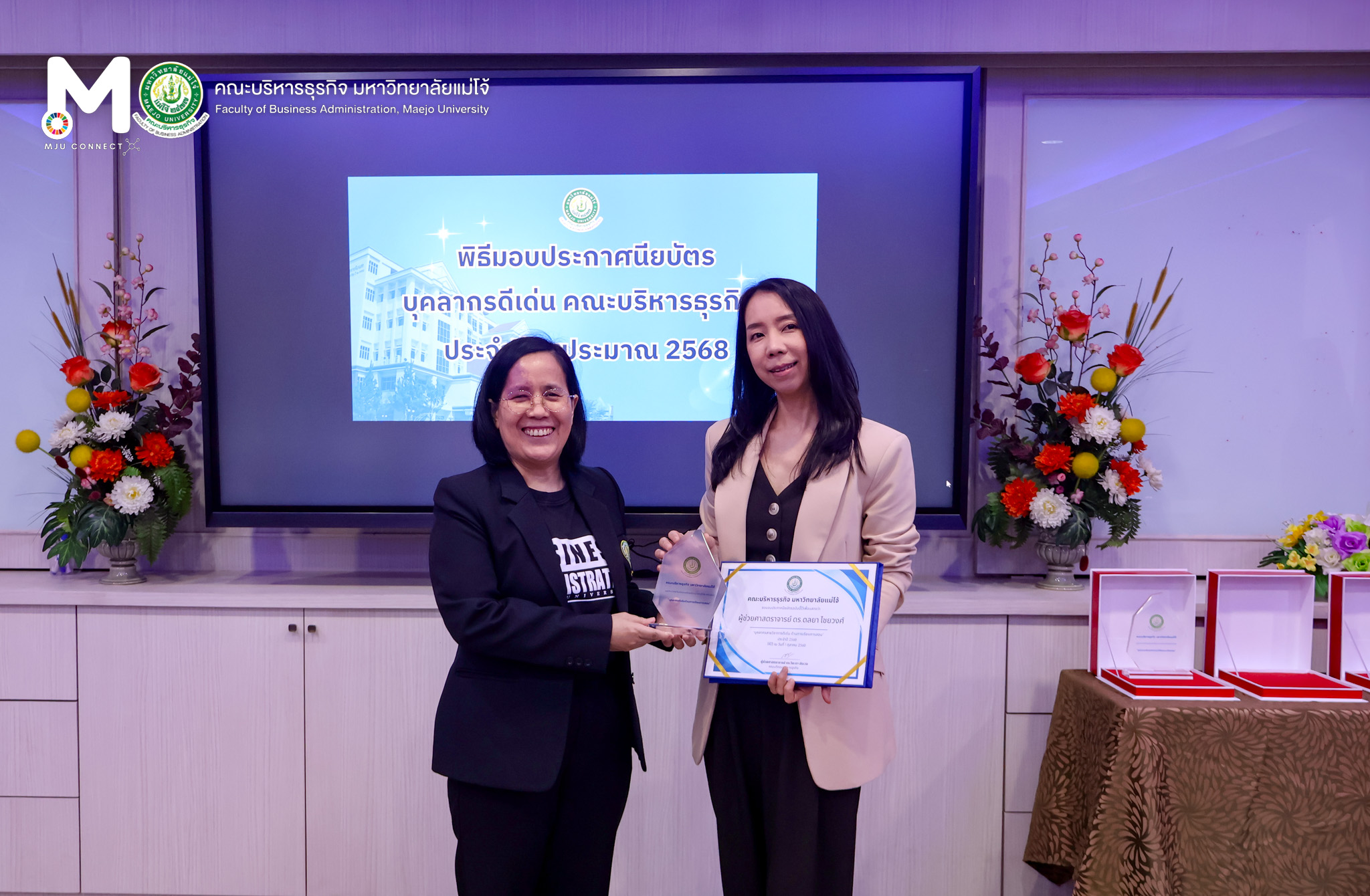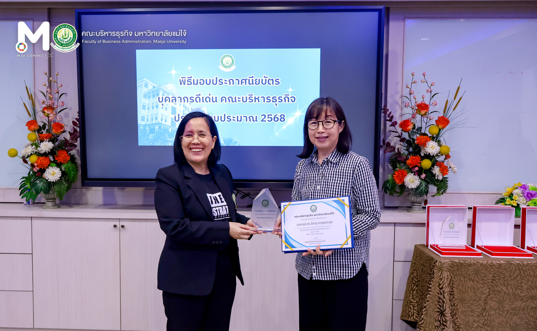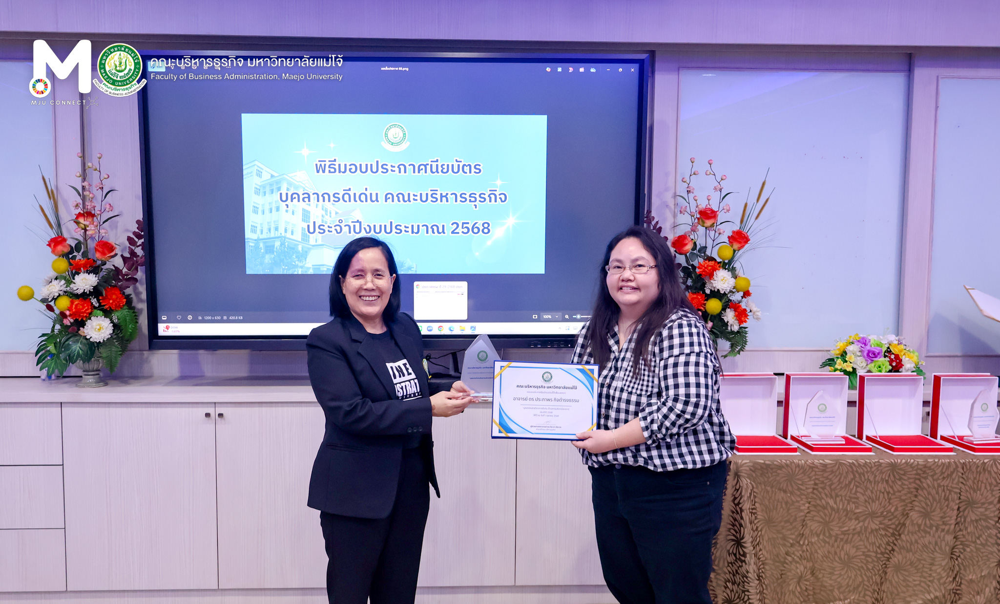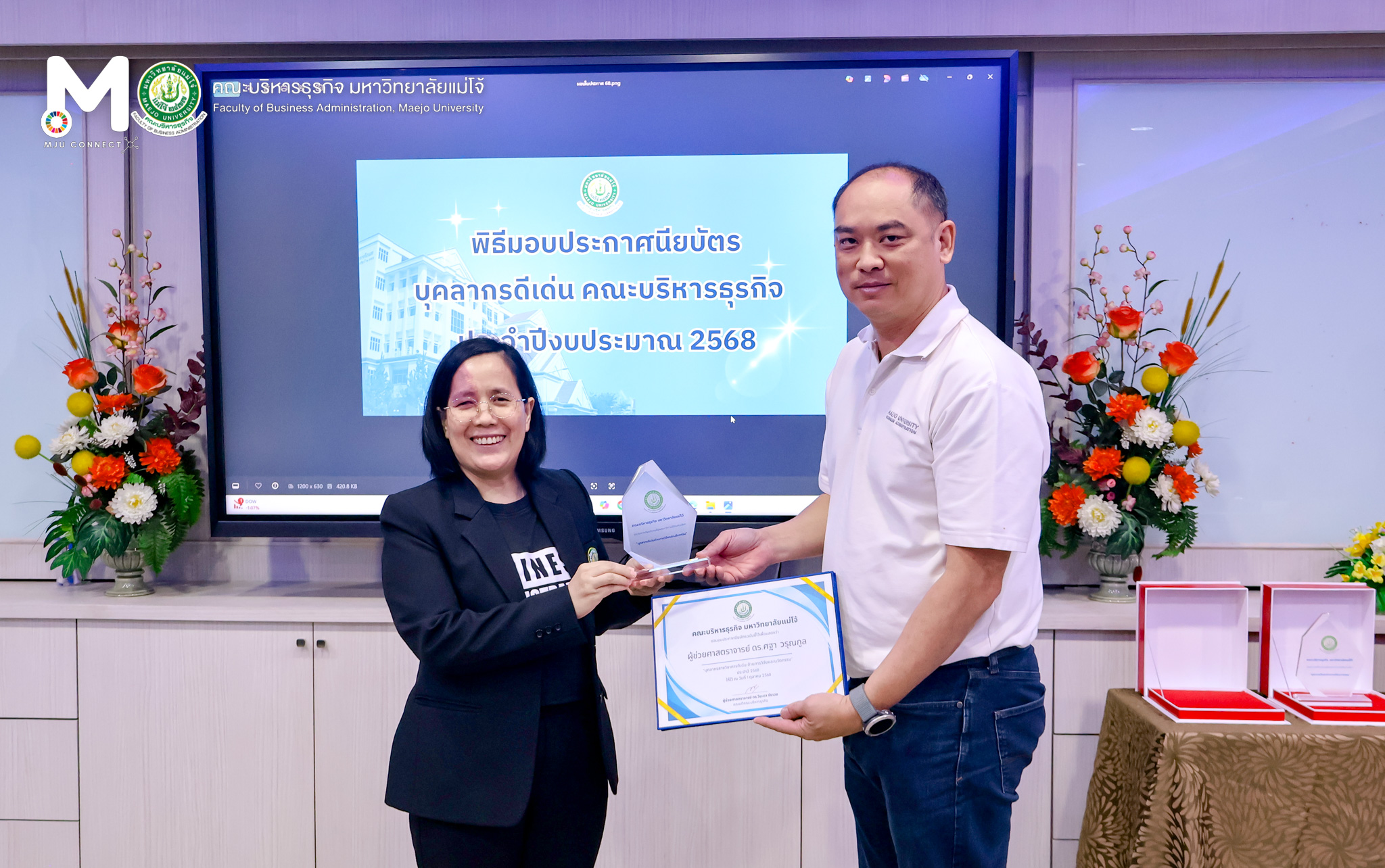 วันพุธที่ 19 ตุลาคม 2567 คณะบริหารธุรกิจ นำโดย ผู้ช่วยศาสตราจารย์ ดร.วิยะดา ชัยเวช คณบดีคณะบริหารธุรกิจ จัดกิจกรรมการประชุมบุคลากรประจำคณะ ครั้งที่ 2 ประจำปี 2568 ณ ห้อง Smart Class Room คณะบริหารธุรกิจ โดยมีวัตถุประสงค์เพื่อแจ้งวาระการประชุมและข้อมูลสำคัญให้แก่บุคลากรทุกท่านได้รับทราบอย่างทั่วถึง นอกจากวาระการประชุมแล้ว กิจกรรมสำคัญที่สร้างความภาคภูมิใจให้กับคณะฯ คือ พิธีมอบประกาศนียบัตรบุคลากรดีเด่น ประจำปี 2568 เพื่อยกย่องและเชิดชูเกียรติบุคลากรผู้ปฏิบัติงานดีเด่นในด้านต่าง ๆ ซึ่งผลการพิจารณารางวัลมีดังนี้ด้านการเรียนการสอน (2 รางวัล)
