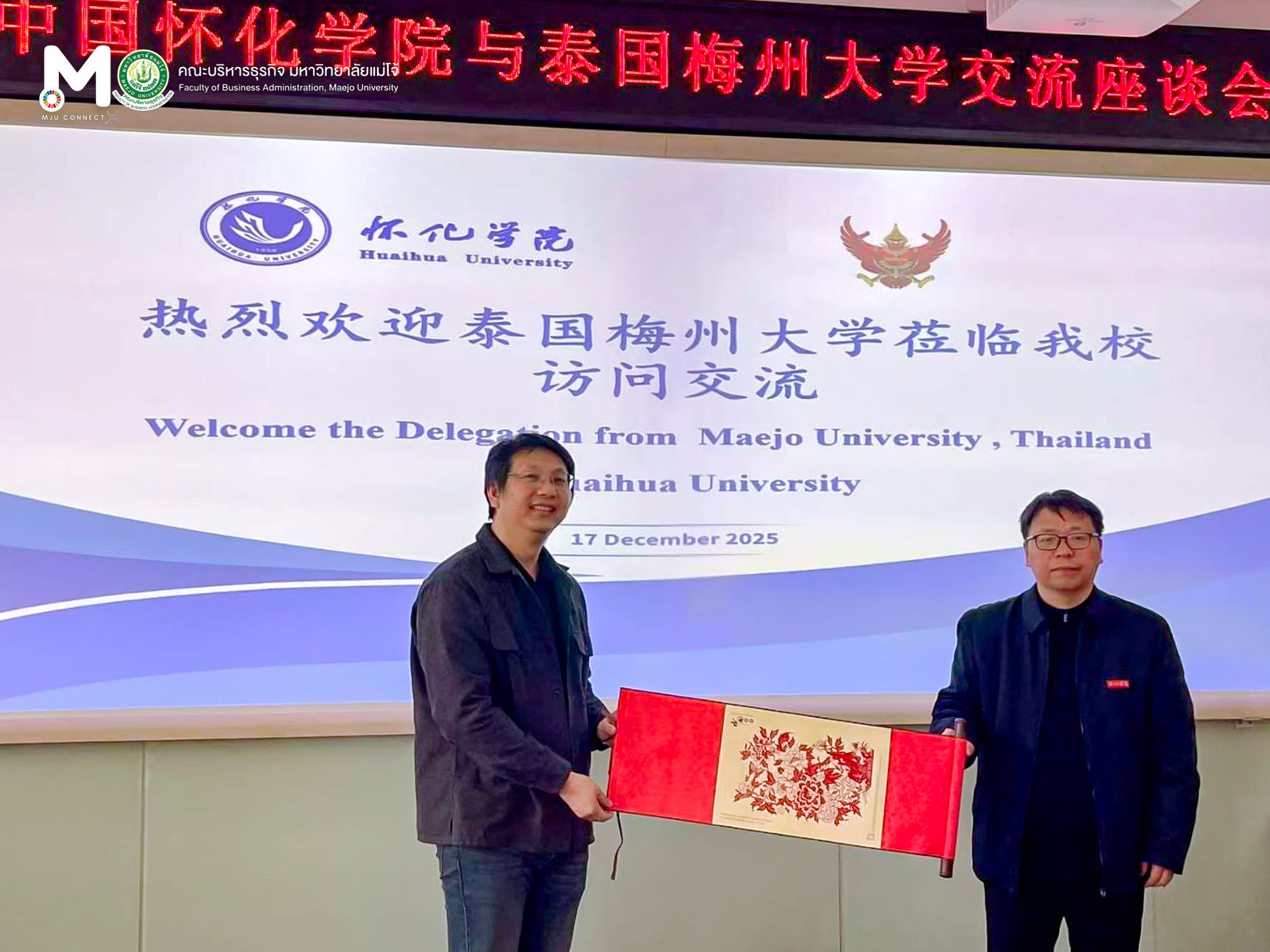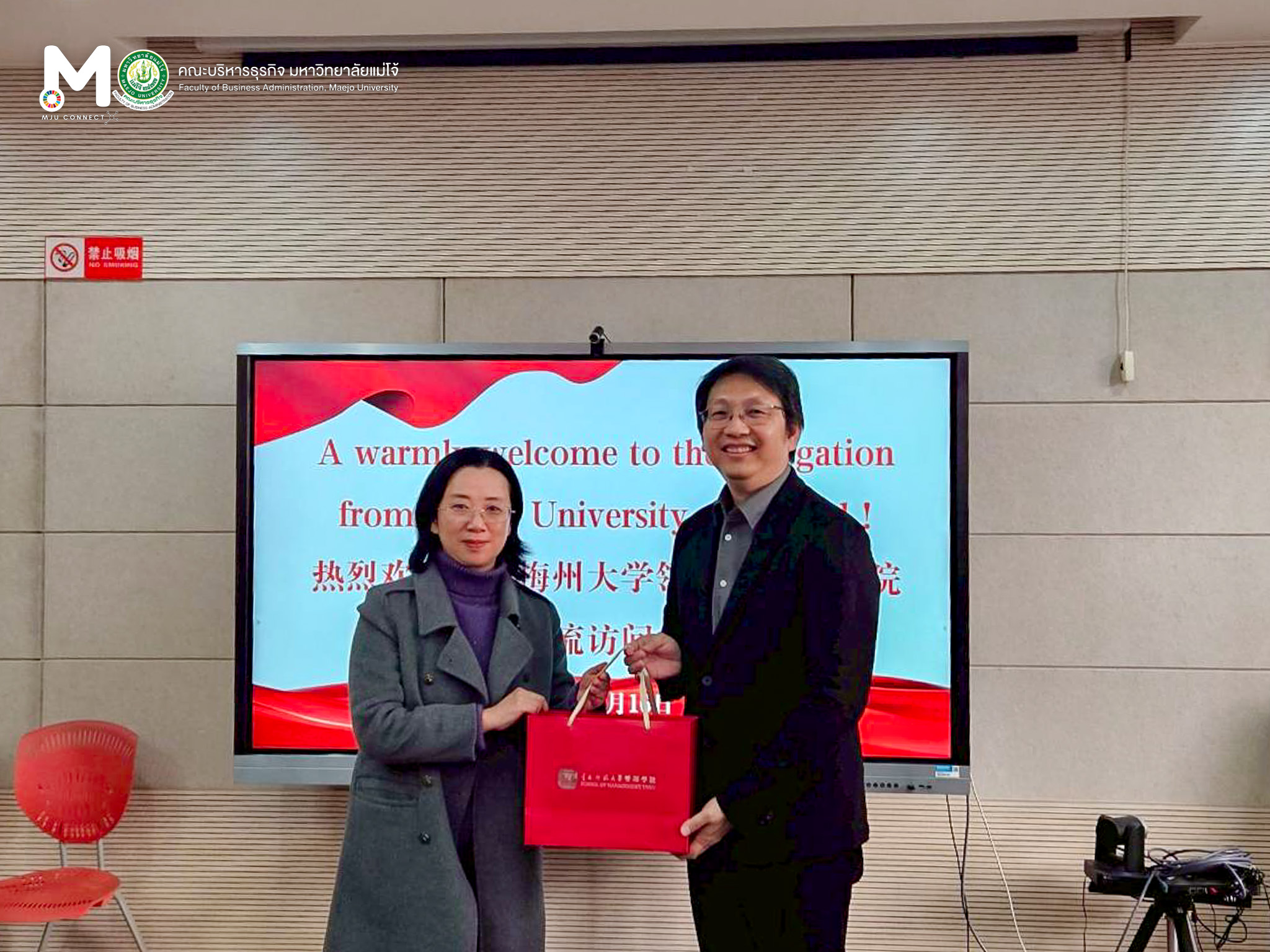 ในวันที่ 16 ธันวาคม 2568 คณะบริหารธุรกิจ มหาวิทยาลัยแม่โจ้ ได้ลงนามในข้อตกลงความร่วมมือกับ Yunnan Ciying Education Consulting Co., Ltd. และร่วมหารือกับ International College, Yunnan Technology and Business University เพื่อกำหนดกรอบความร่วมมือด้านวิชาการ การพัฒนาหลักสูตร และการแลกเปลี่ยนทางการศึกษา พร้อมกันนี้ได้ร่วมประชุมหารือกับผู้บริหารจาก International College, Yunnan Technology and Business University และ Yunnan Normal University เพื่อกำหนดกรอบแนวทางในการแลกเปลี่ยนนักศึกษาและบุคลากร รวมถึงการขยายความร่วมมือในการพัฒนาหลักสูตรที่ตอบสนองต่อการเปลี่ยนแปลงของภาคธุรกิจในระดับภูมิภาค