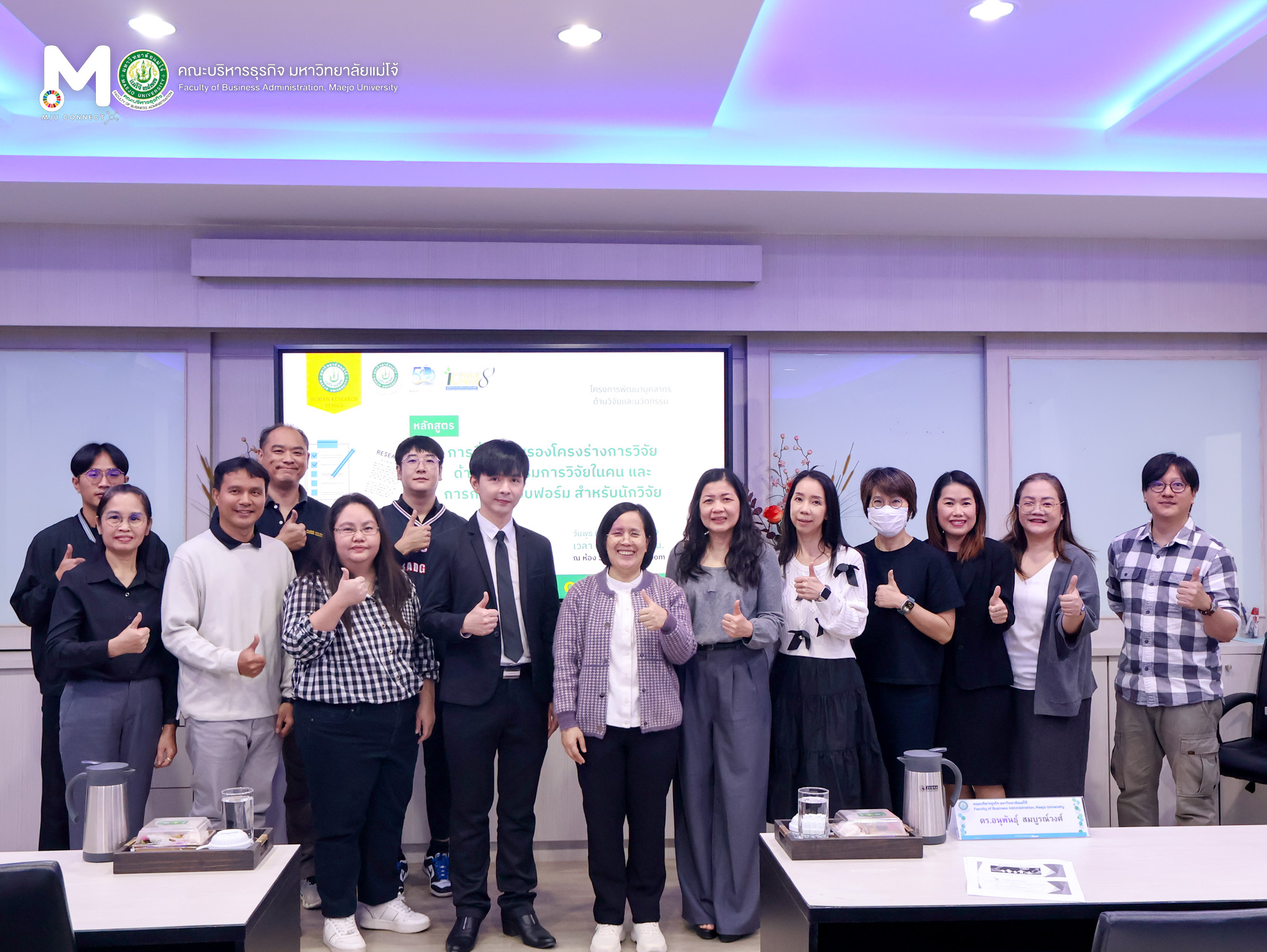 คณะบริหารธุรกิจ มหาวิทยาลัยแม่โจ้ จัดโครงการพัฒนาบุคลากรด้านวิจัยและนวัตกรรม โครงการการยื่นขอรับรองโครงร่างการวิจัยด้านจริยธรรมการวิจัยในคนและการกรอกแบบฟอร์มสำหรับนักวิจัย