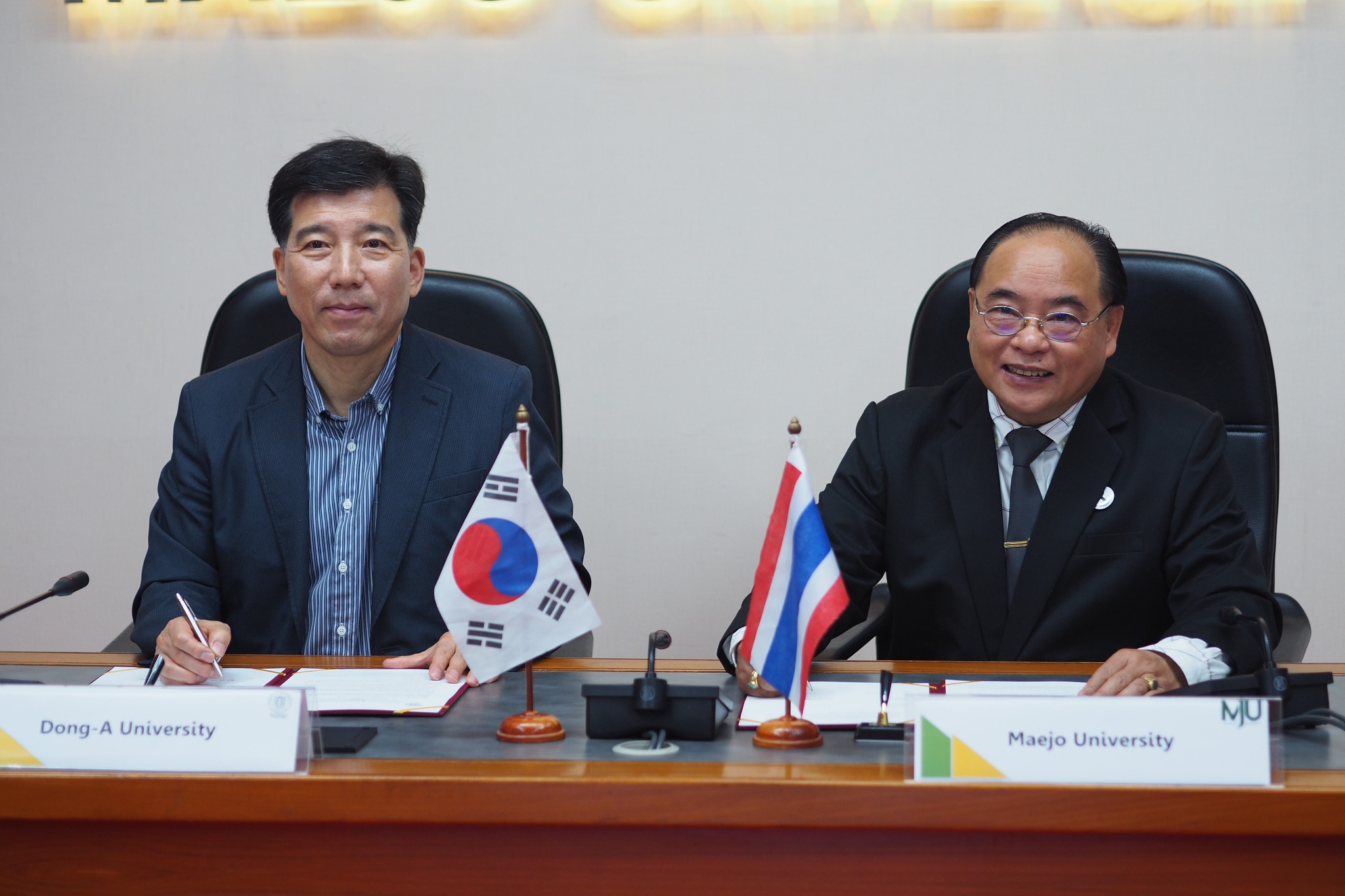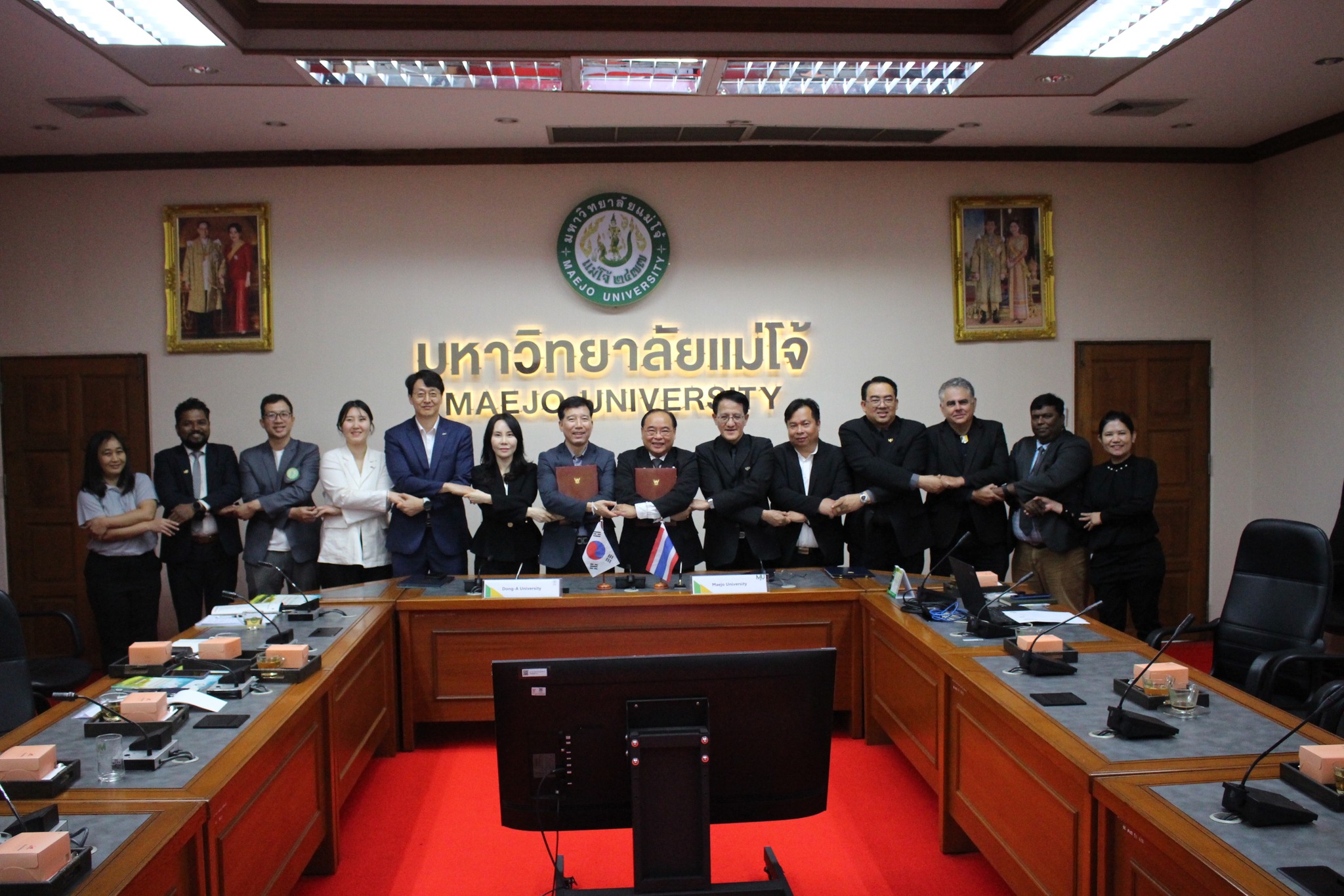 วันพฤหัสบดีที่ 5 กุมภาพันธ์ 2569 รองศาสตราจารย์ ดร.วีระพล ทองมา อธิการบดีมหาวิทยาลัยแม่โจ้ พร้อมด้วยคณะผู้บริหาร ร่วมให้การต้อนรับ Dr. Hae Woo Lee อธิการบดี Dong-A University พร้อมคณะทำงาน ในพิธีลงนามบันทึกความเข้าใจความร่วมมือทางวิชาการ เพื่อส่งเสริมการจัดการศึกษาและการพัฒนาบุคลากรร่วมกันระหว่างไทยและเกาหลีใต้ ในการนี้ อาจารย์ ดร.จักรพงษ์ สุขพันธ์ รองคณบดีคณะบริหารธุรกิจ ฝ่ายพัฒนานักศึกษาและวิเทศสัมพันธ์ ได้เข้าร่วมให้การต้อนรับและร่วมหารือในกรอบความร่วมมือด้านบริหารธุรกิจ ซึ่งถือเป็นสาขาที่มีศักยภาพสูงในการแลกเปลี่ยนองค์ความรู้และการฝึกงานในระดับนานาชาติ โดยมีเป้าหมายหลักเพื่อสร้างโอกาสให้นักศึกษาได้สัมผัสบรรยากาศการเรียนรู้และวัฒนธรรมการทำงานในต่างประเทศ อันเป็นการเพิ่มขีดความสามารถในการแข่งขันในตลาดแรงงานสากล ณ อาคารสำนักงานมหาวิทยาลัย มหาวิทยาลัยแม่โจ้