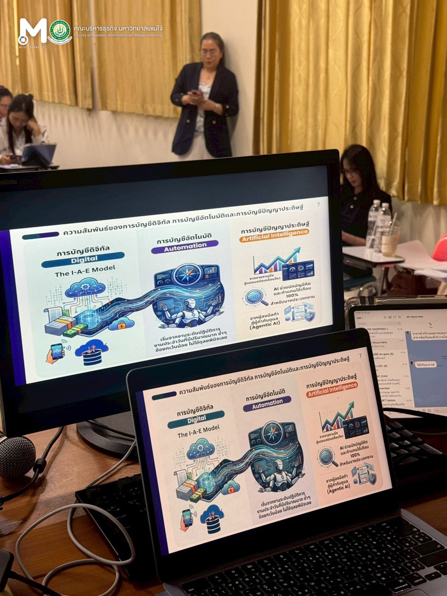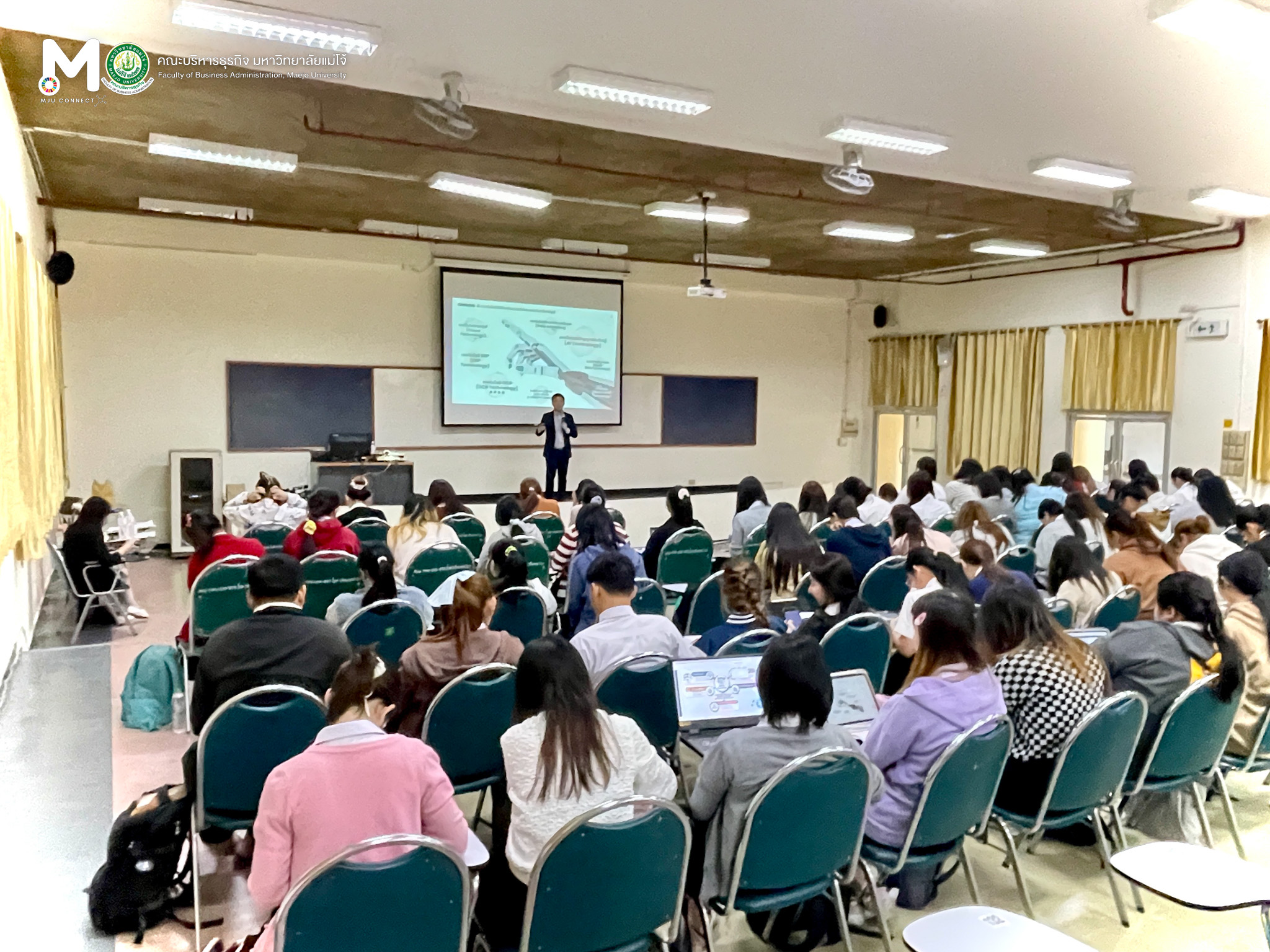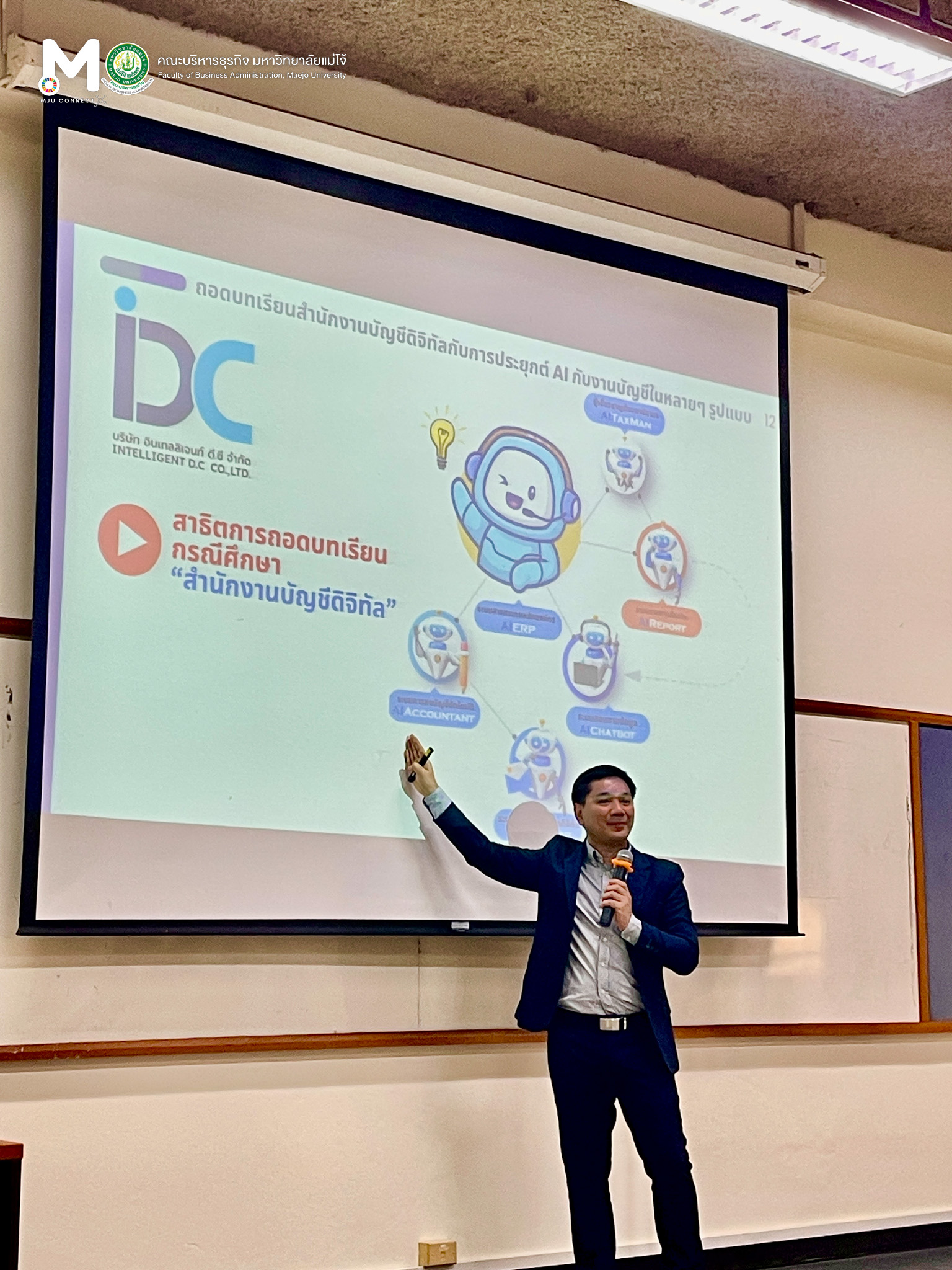 วันพุธที่ 11 กุมภาพันธ์ 2569 หลักสูตรบัญชีบัณฑิต จัดโครงการอัพเดทความรู้สู่การเป็นผู้ประกอบวิชาชีพบัญชี ภาคเรียนที่ 2-2568 หัวข้อเรื่อง การประยุกต์ใช้เทคโนโลยีปัญญาประดิษฐ์สำหรับผู้ประกอบวิชาชีพบัญชี (AI for Accounting) โดยมีวัตถุประสงค์เพื่อให้นักศึกษาได้รับความรู้เพิ่มเติมจากผู้ที่มีความเชี่ยวชาญในเนื้อหาตามรายวิชานั้นๆ และได้รับมุมมองความคิดที่หลากหลาย ณ ห้องเรียน ศร 304 อาคารเรียนรวมแม่โจ้ 70 ปี ทั้งนี้ได้รับเกียรติจาก รองศาสตราจารย์ ดร.อุเทน เลานำทา กรรมการผู้จัดการ บริษัท อินเทลลิเจนท์ ดี.ซี. จำกัด เป็นวิทยากรในการบรรยาย